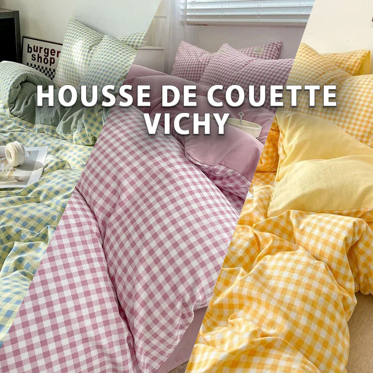Le motif vichy s’invite dans votre chambre avec élégance. Intemporel et chaleureux, il évoque les cuisines provençales d’antan, les pique-niques d’été et le raffinement discret du linge de maison traditionnel. Nos housses de couette vichy réinventent ce classique en jouant avec les matières, les couleurs et les formats, pour une décoration à la fois douce, graphique et actuelle. Vous trouverez aussi dans cette collection la parure de lit vichy parfaite pour créer une atmosphère romantique ou vintage.